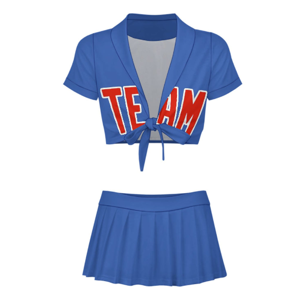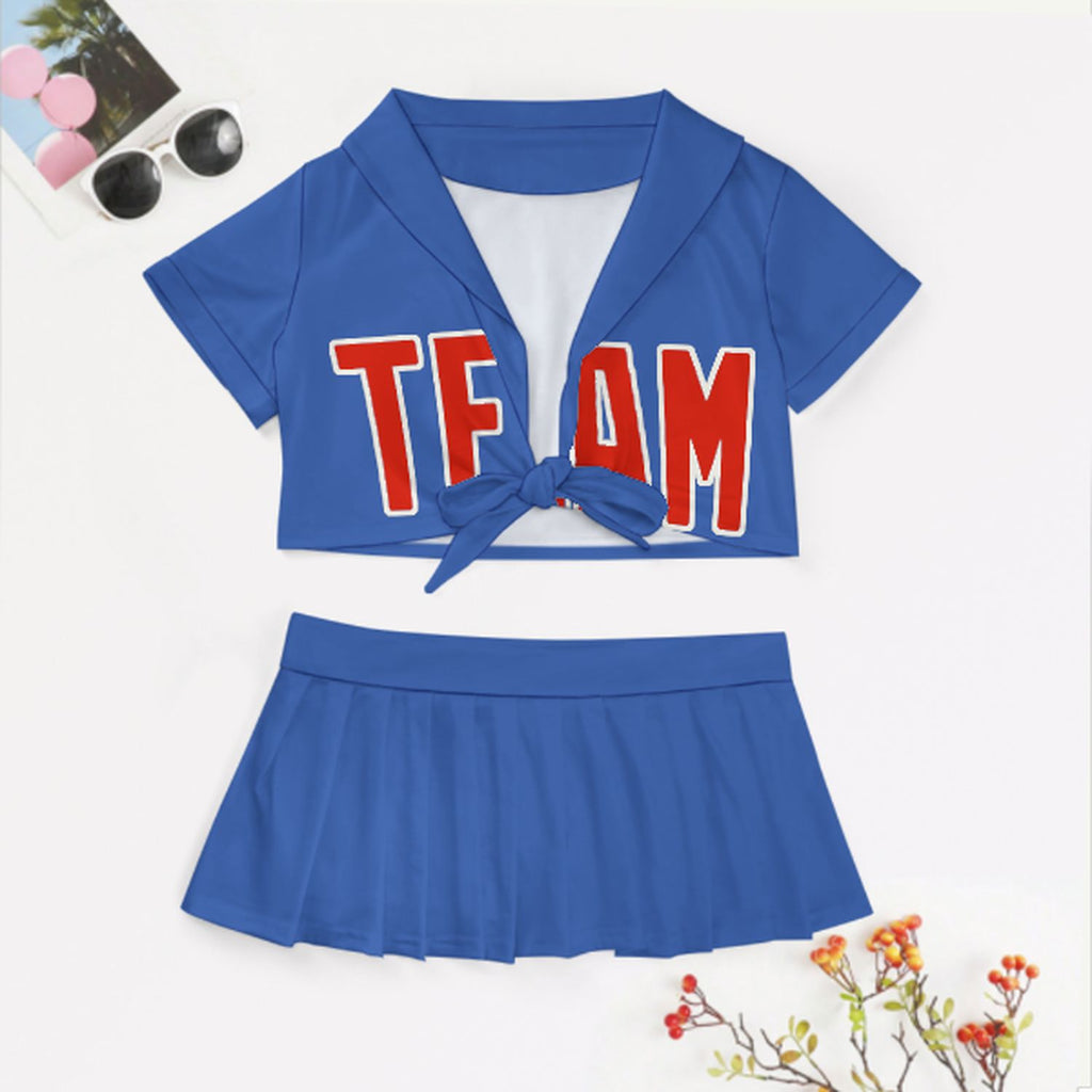 Custom Sky Blue Orange Red Cheerleading Uniform Set