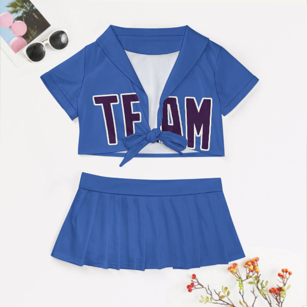 Custom Sky Blue Purple Cheerleading Uniform Set