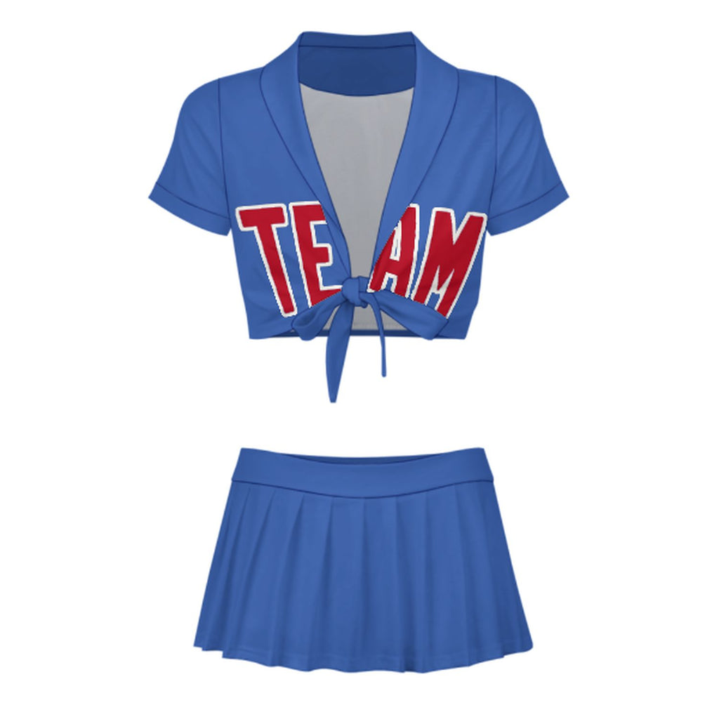 Custom Sky Blue Red Cheerleading Uniform Set