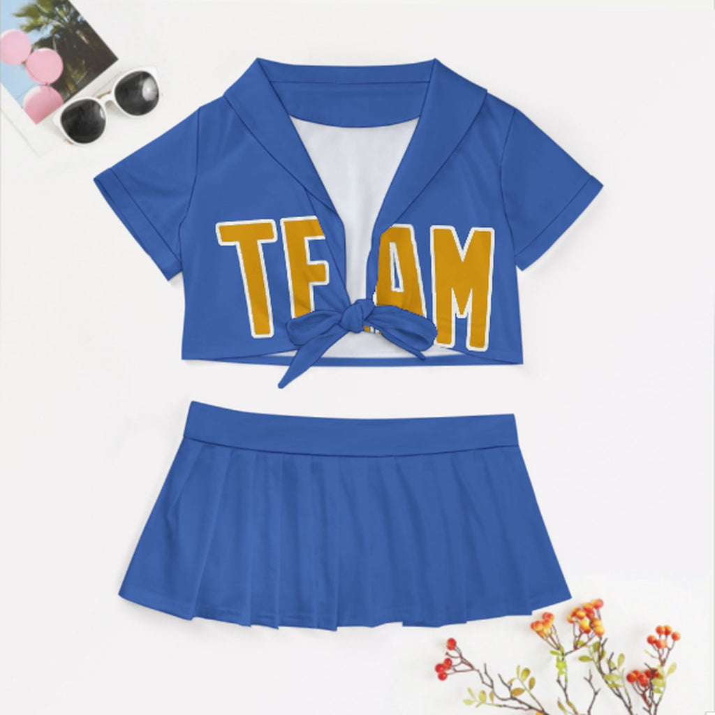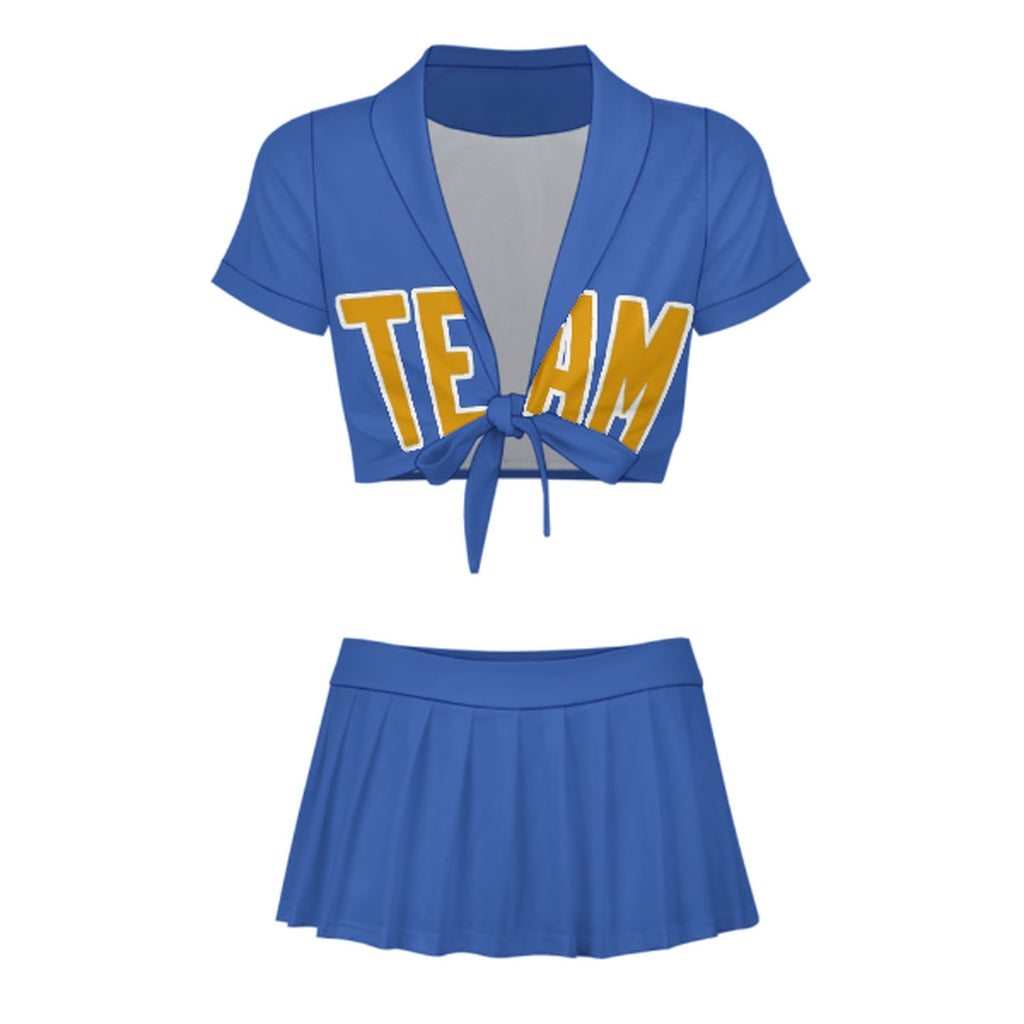 Custom Sky Blue Yellow Cheerleading Uniform Set