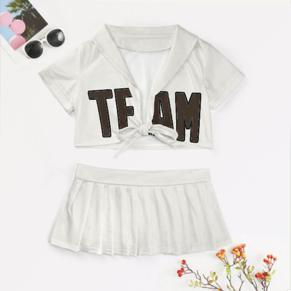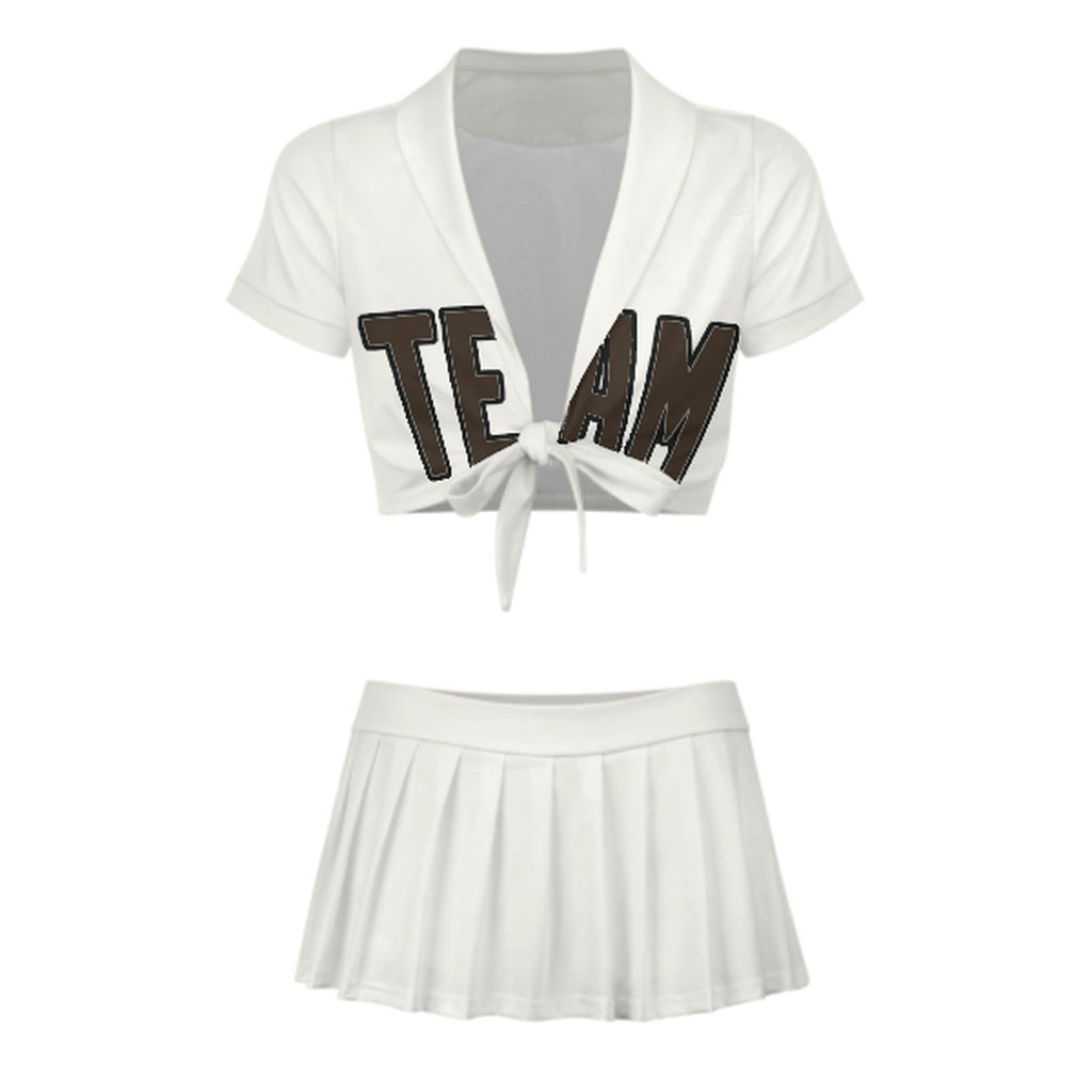 Custom White Brown Cheerleading Uniform Set