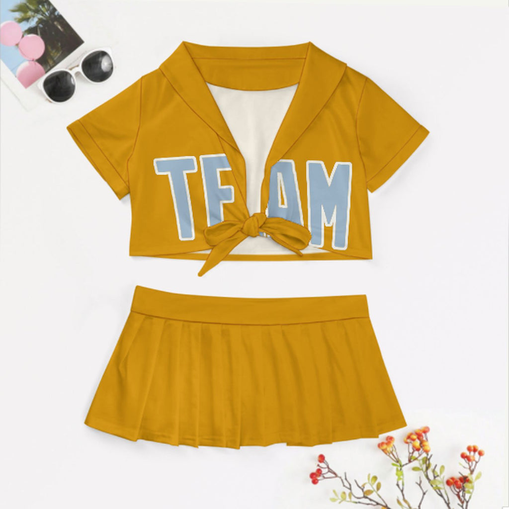 Custom Yellow Light Blue Cheerleading Uniform Set