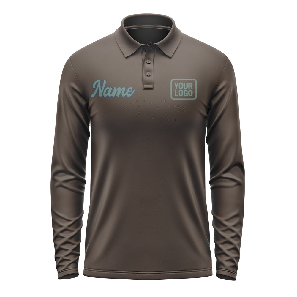 Custom Brown Blue Green Long Sleeve Polo Shirt
