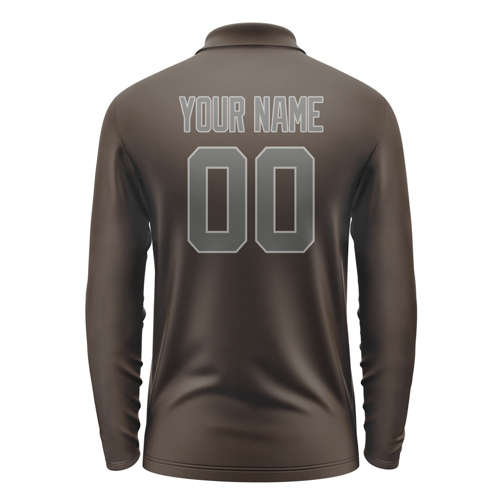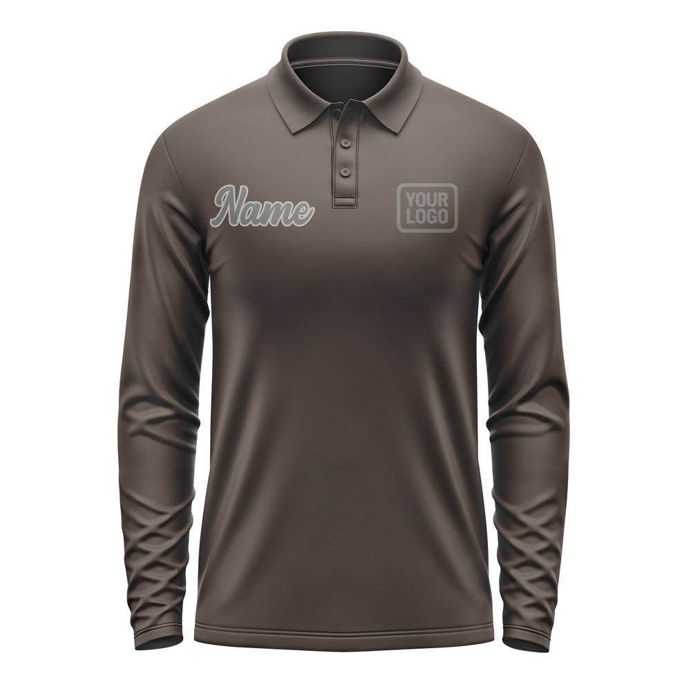 Custom Brown Dark Grey Long Sleeve Polo Shirt