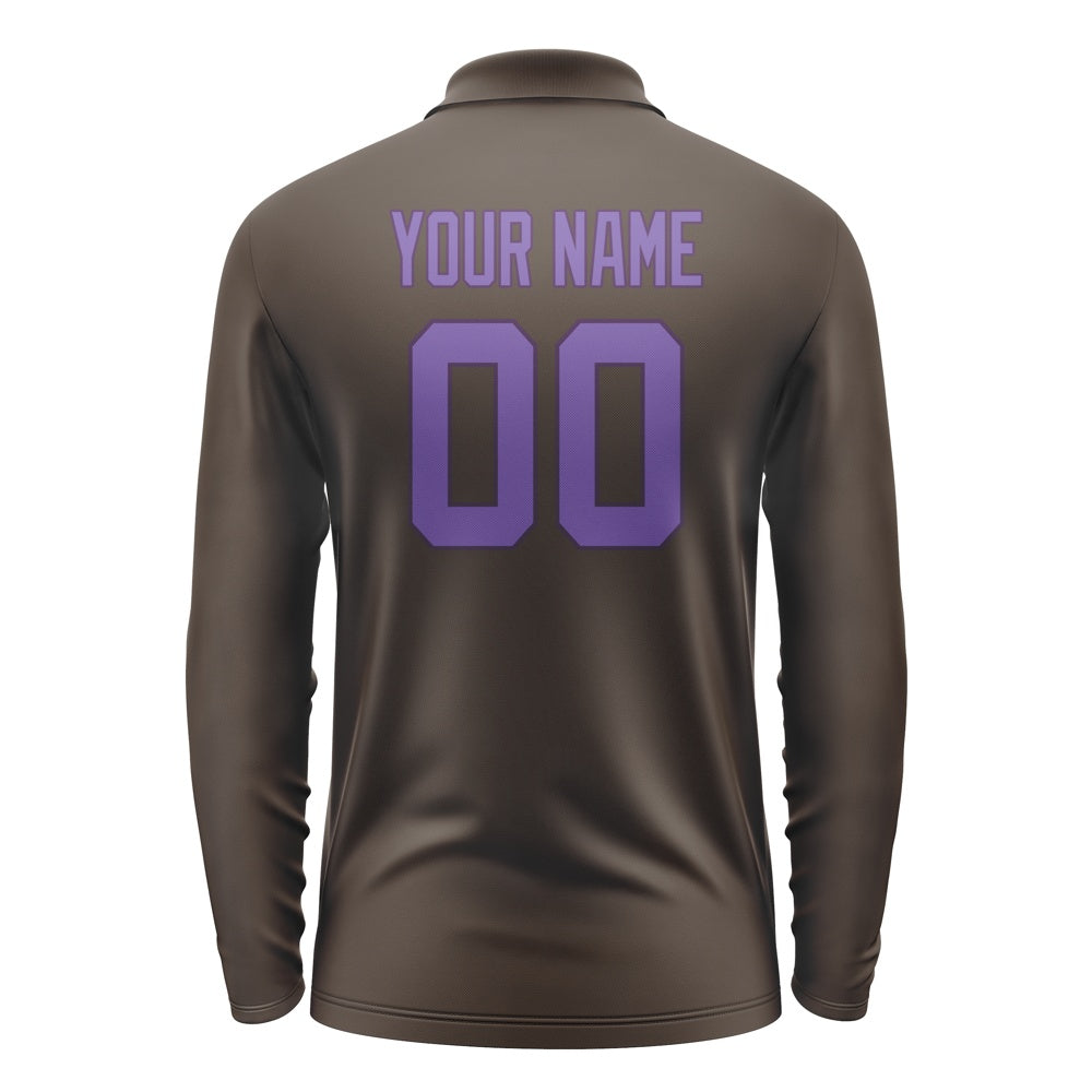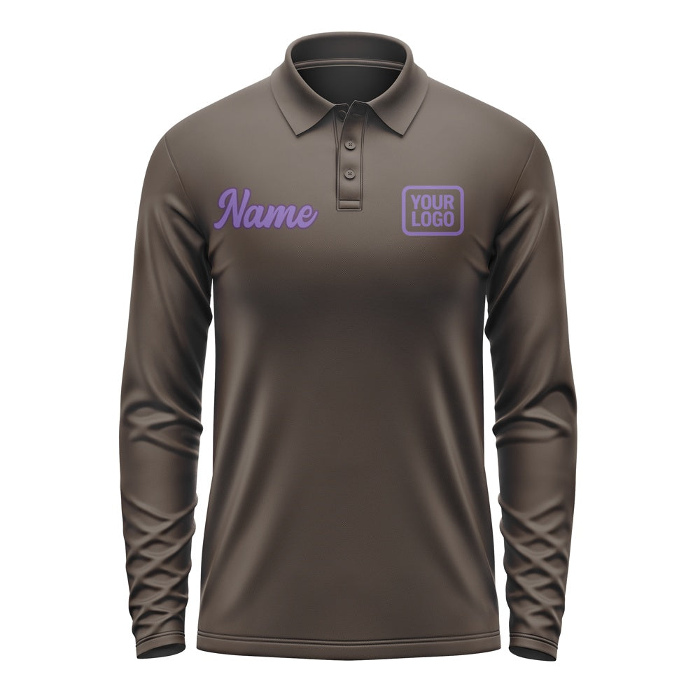 Custom Brown Light Purple Long Sleeve Polo Shirt