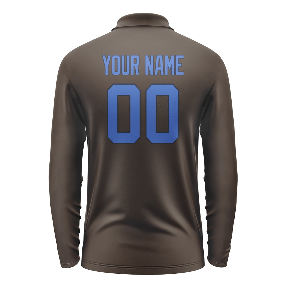 Custom Brown Sky Blue Long Sleeve Polo Shirt
