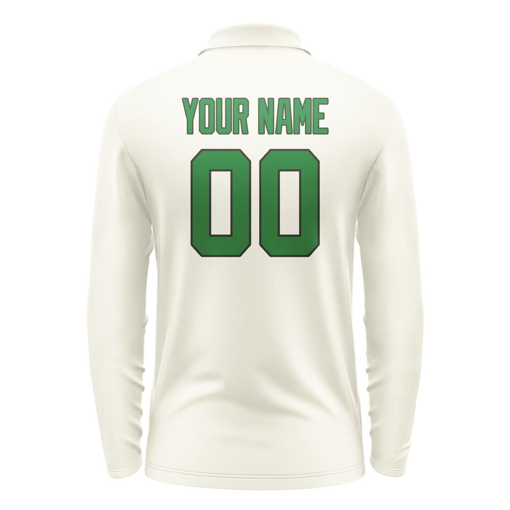 Custom Cream Emerald Green Long Sleeve Polo Shirt