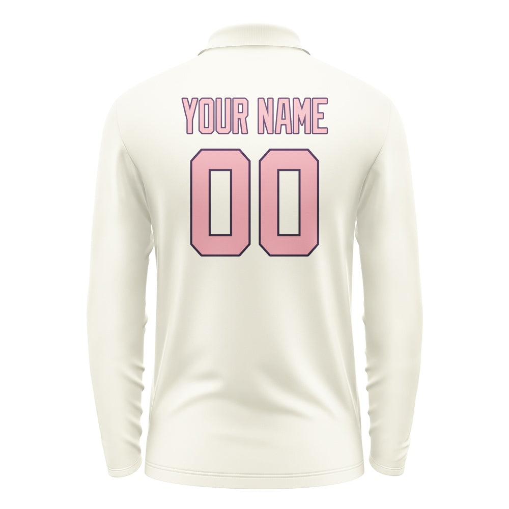 Custom Cream Light Pink Long Sleeve Polo Shirt