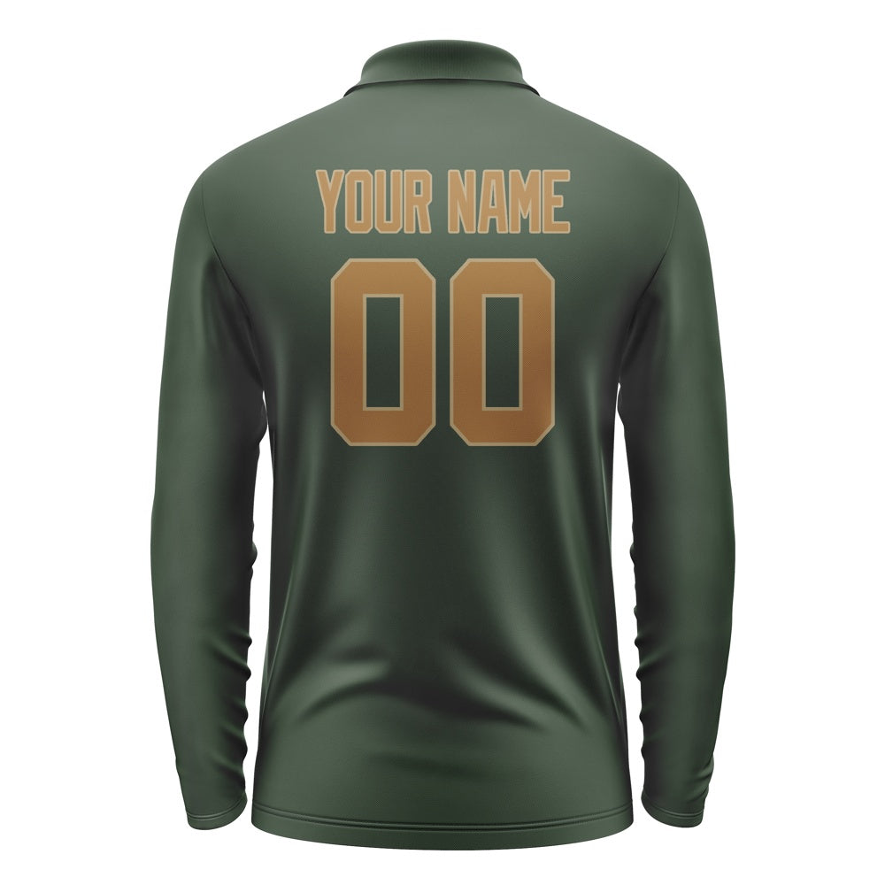 Custom Dark Green Khaki Long Sleeve Polo Shirt
