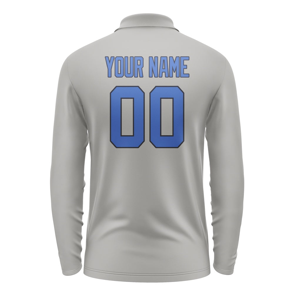 Custom Gray Sky Blue Long Sleeve Polo Shirt