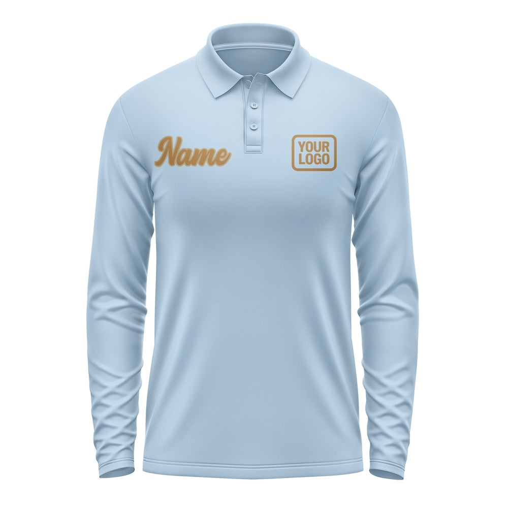 Custom Light Blue Khaki Long Sleeve Polo Shirt