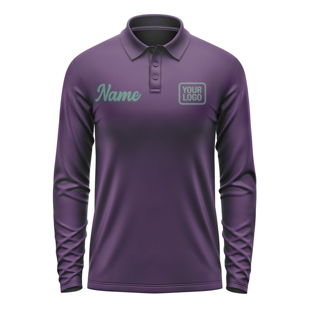 Custom Purple Blue Green Long Sleeve Polo Shirt