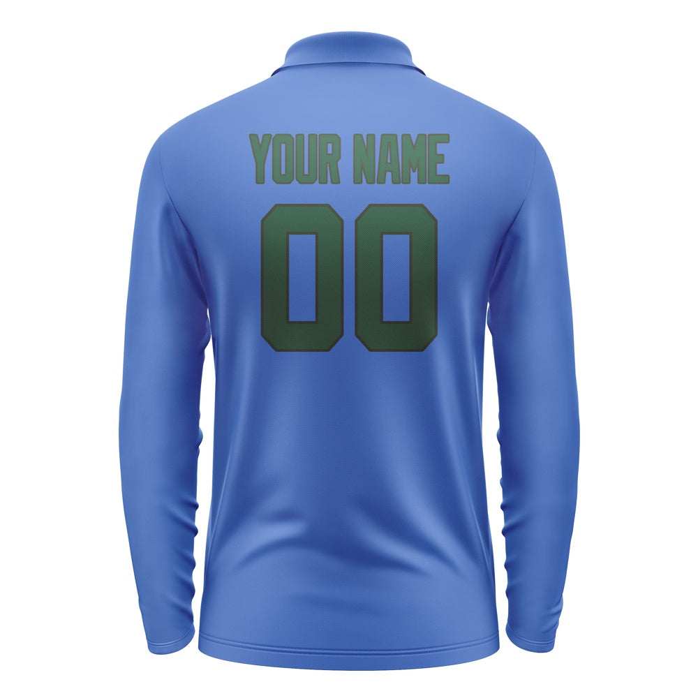 Custom Sky Blue Green Long Sleeve Polo Shirt