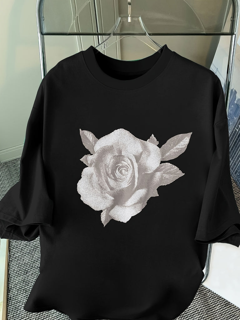 Graphic Tshirts Women Elegant Soft Detailed Rose Flower, White Cotton Shirt Women, Women's Short Sleeve T Shirts