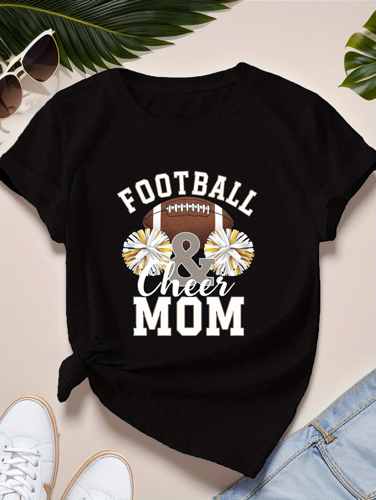 Green Shirt Womens Football Cheer Mom With Brown Leather American Football And White Tropical Flowers Tshirt, Graphic Tees Women, Womens White Tee