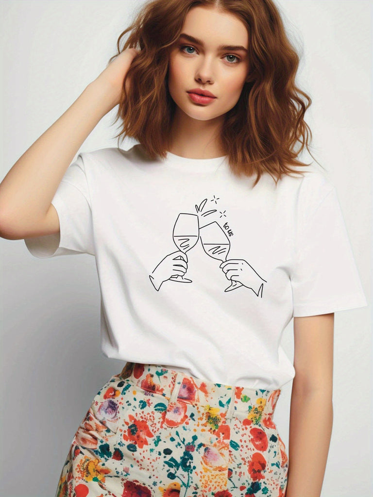 Red T Shirt Women Toasting Glasses With Minimalist Line Art Celebrating Life Tshirt, Womens Grinch Shirt, Women T Shirt