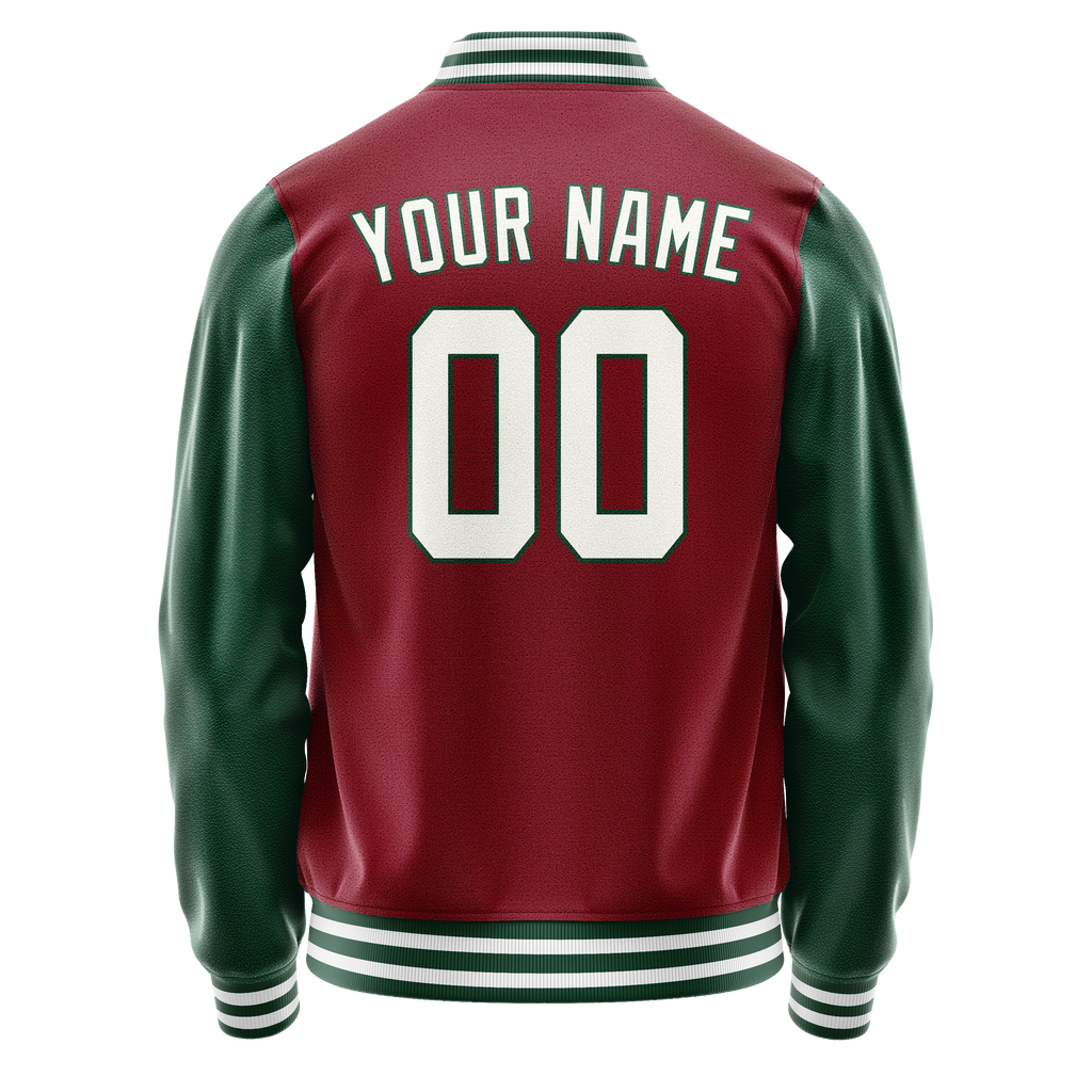 Custom Crimson Kelly-Green Solid Color Varsity Letterman Jacket