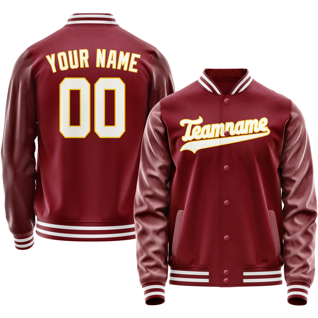 Custom Crimson White Solid Color Varsity Letterman Jacket