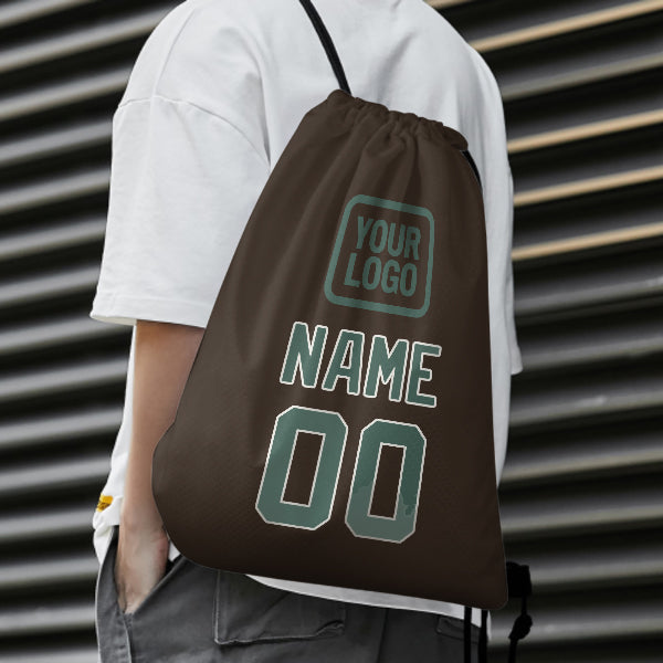 Custom Brown Blue Green Drawstring Bag