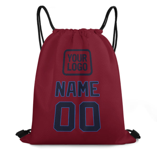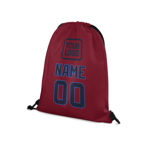 Custom Crimson Red Navy Drawstring Bag