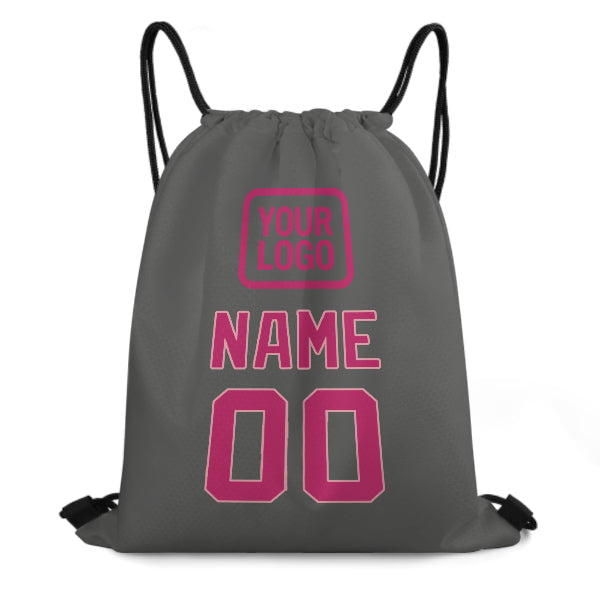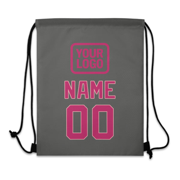 Custom Dark Grey Pink Drawstring Bag
