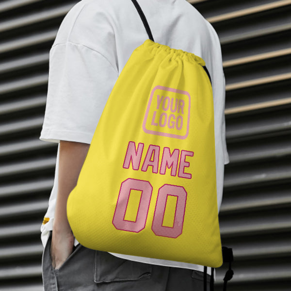 Custom Light Yellow Light Pink Drawstring Bag