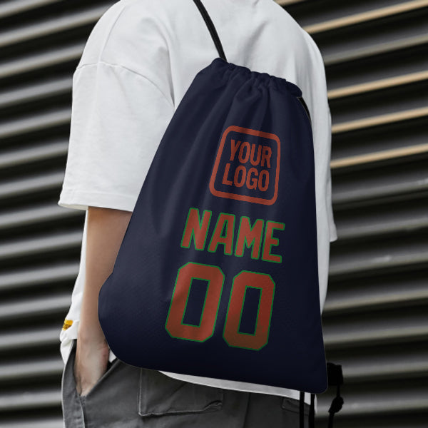 Custom Navy Coral Red Drawstring Bag