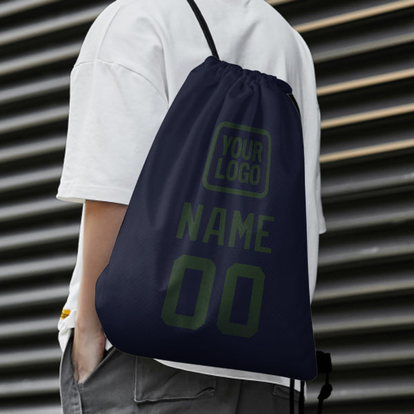 Custom Navy Dark Green Drawstring Bag