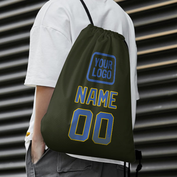 Custom Olive Sky Blue Drawstring Bag