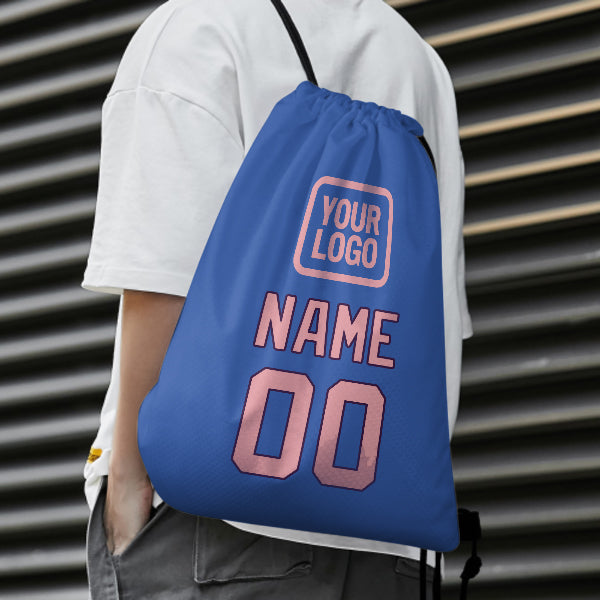 Custom Sky Blue Light Pink Drawstring Bag