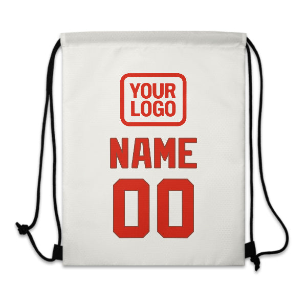 Custom White Orange Red Drawstring Bag