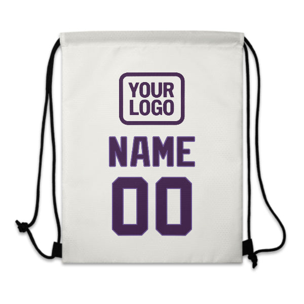 Custom White Purple Drawstring Bag
