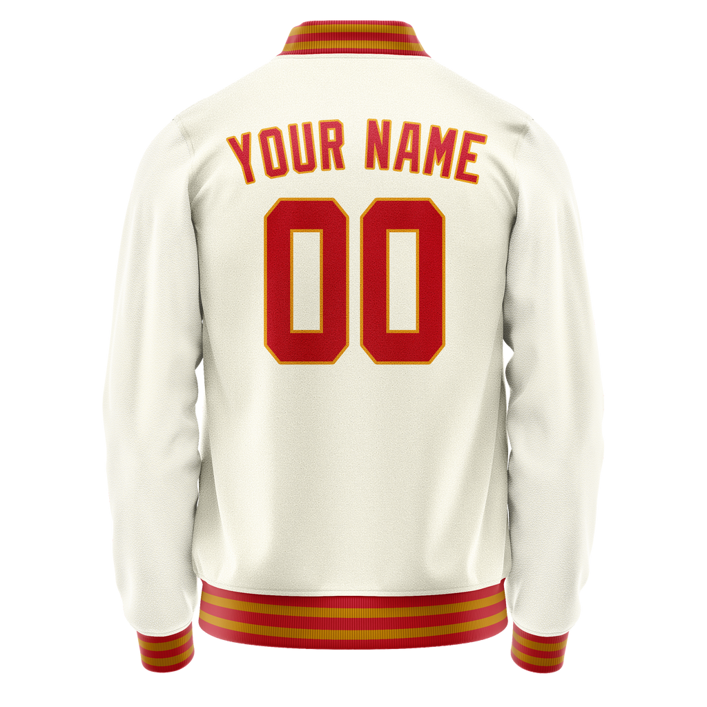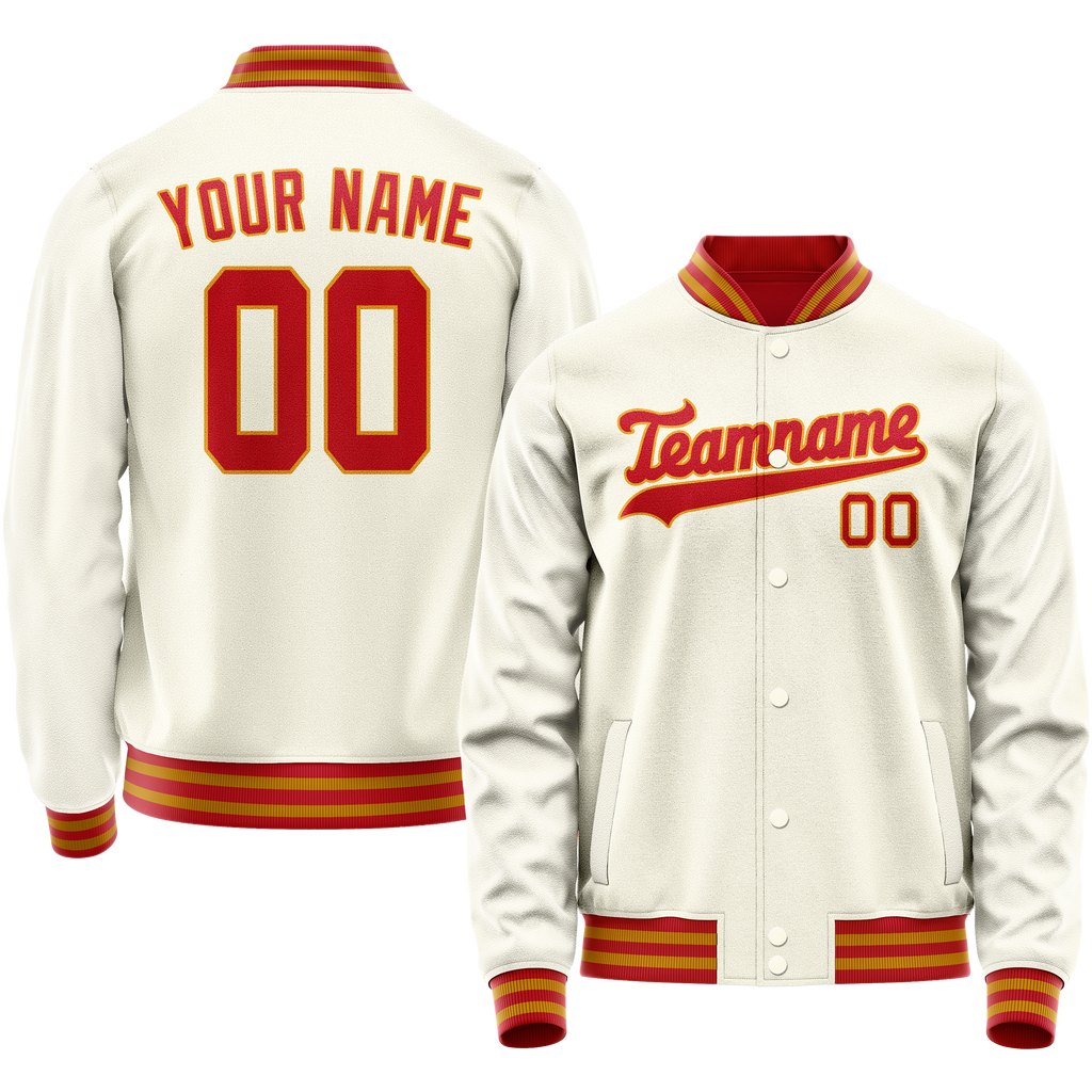 Custom Cream Orange Solid Color Varsity Letterman Jacket