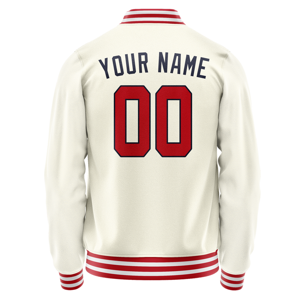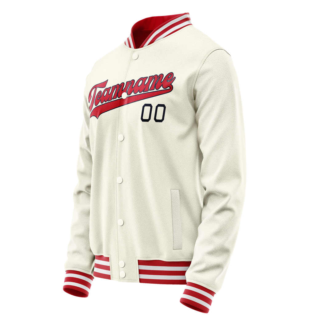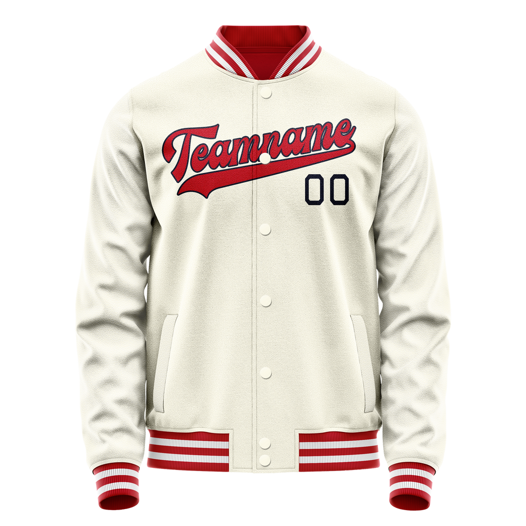 Custom Cream Red Solid Color Varsity Letterman Jacket