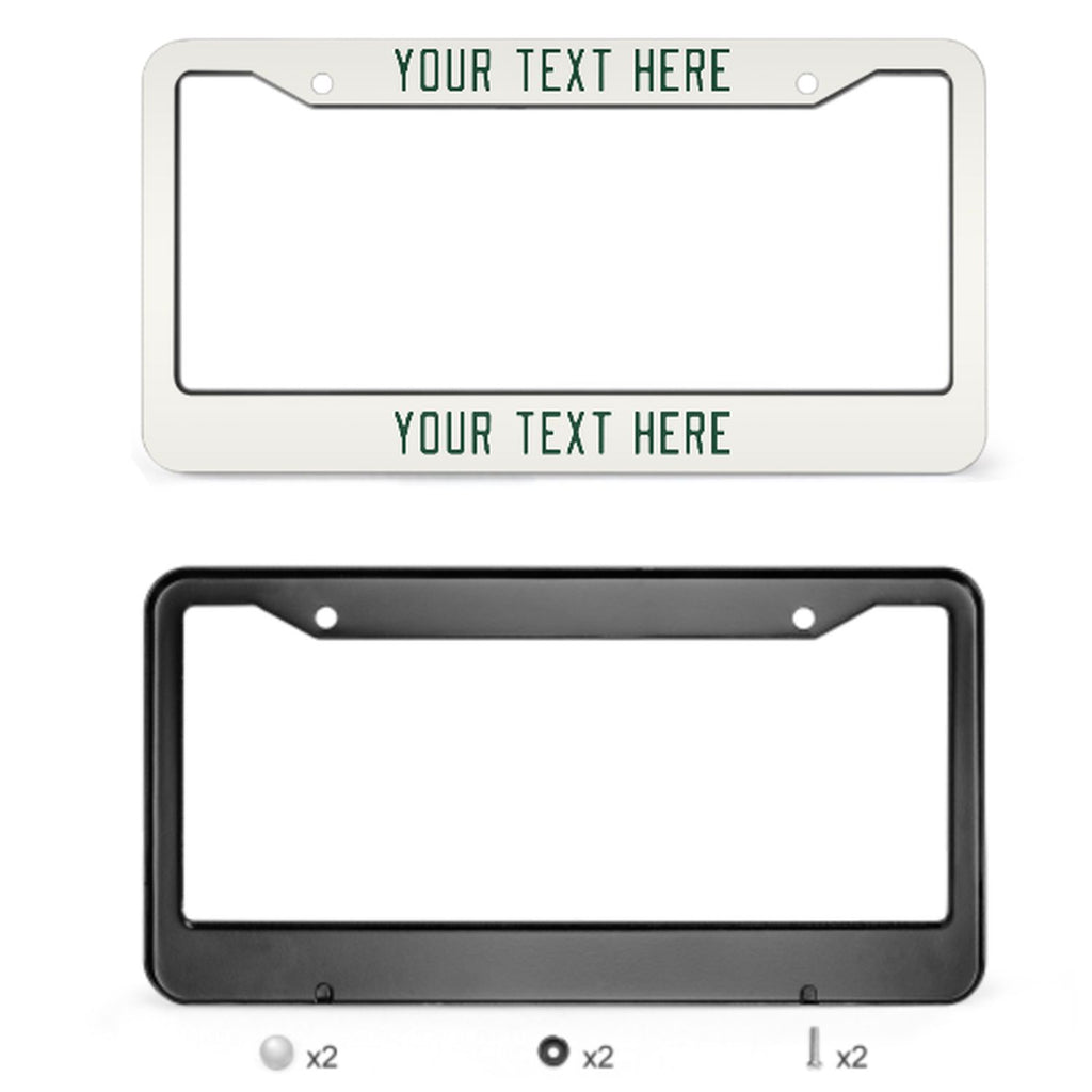 Custom White Green License Plate Frame