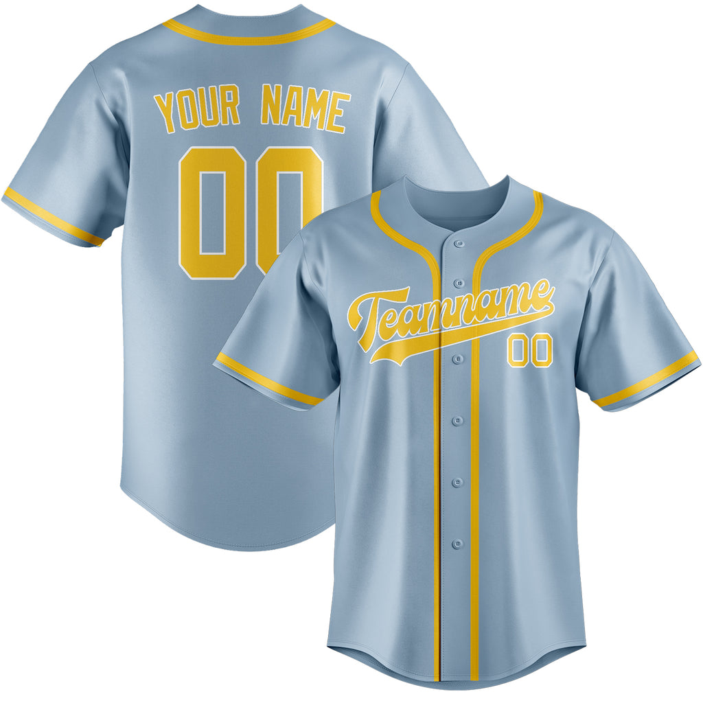 Custom Light Blue & Gold Colors Design Sports Baseball Jersey