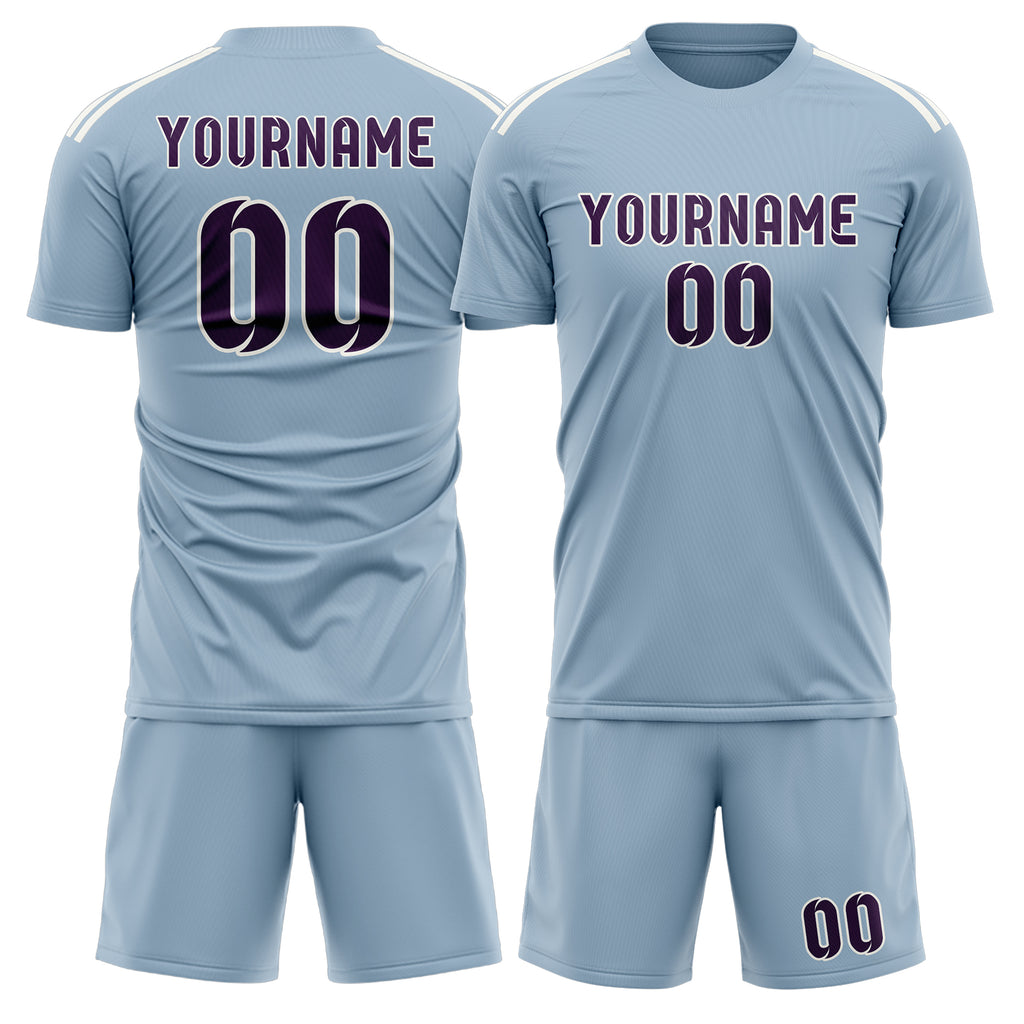 Custom Light Blue Purple Soccer Jersey