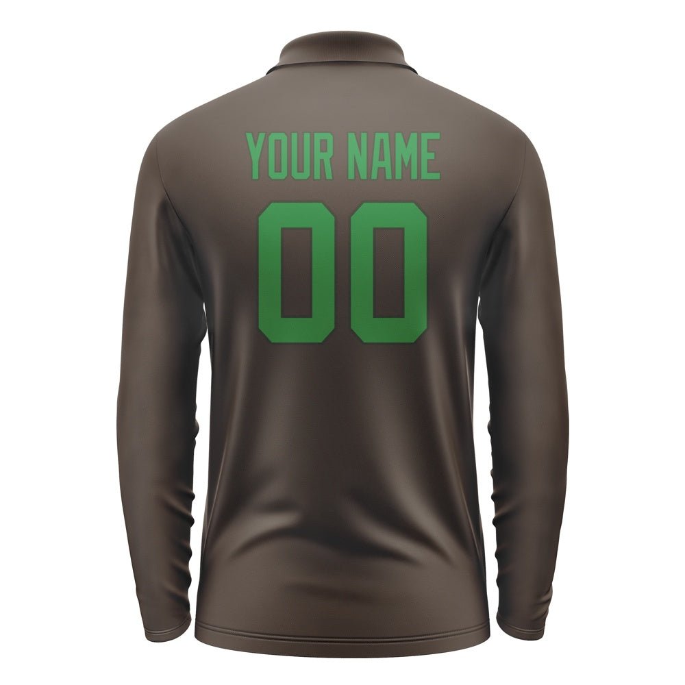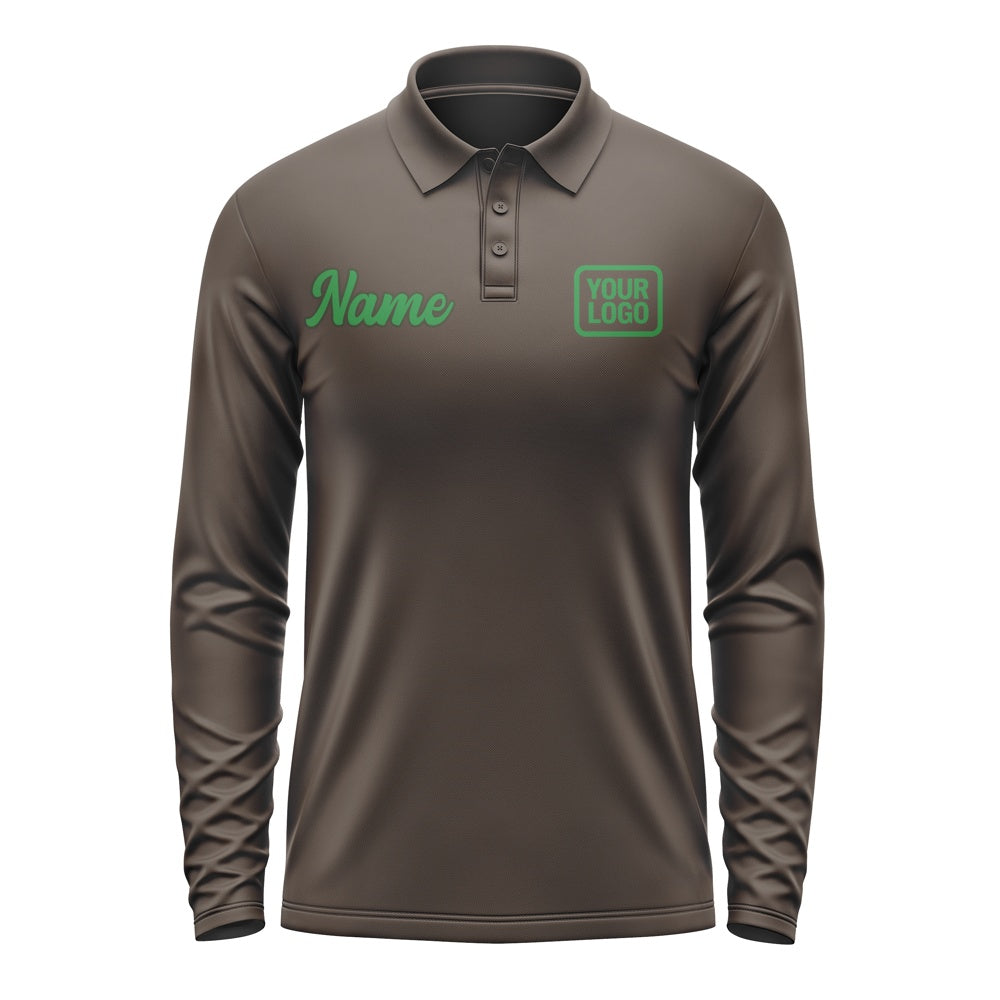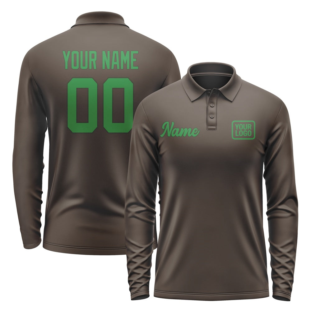 Custom Brown Emerald Green Long Sleeve Polo Shirt