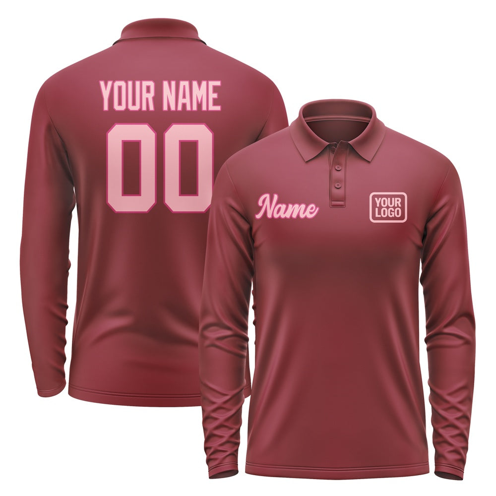 Custom Crimson Red Light Pink Long Sleeve Polo Shirt