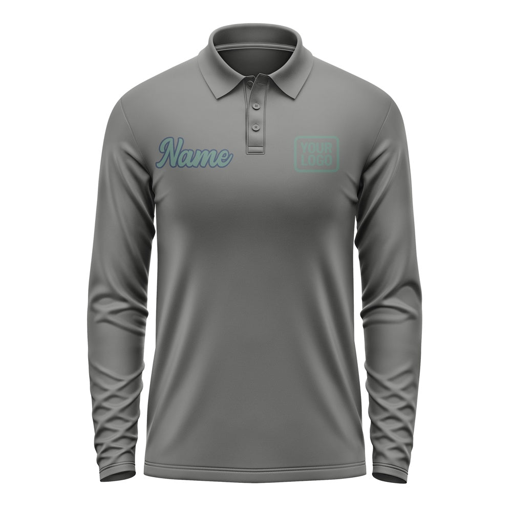 Custom Dark Grey Blue Green Long Sleeve Polo Shirt
