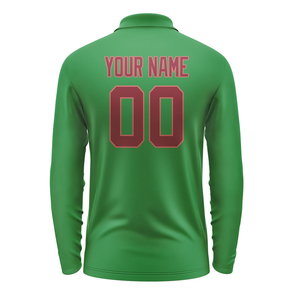 Custom Emerald Green Crimson Red Long Sleeve Polo Shirt