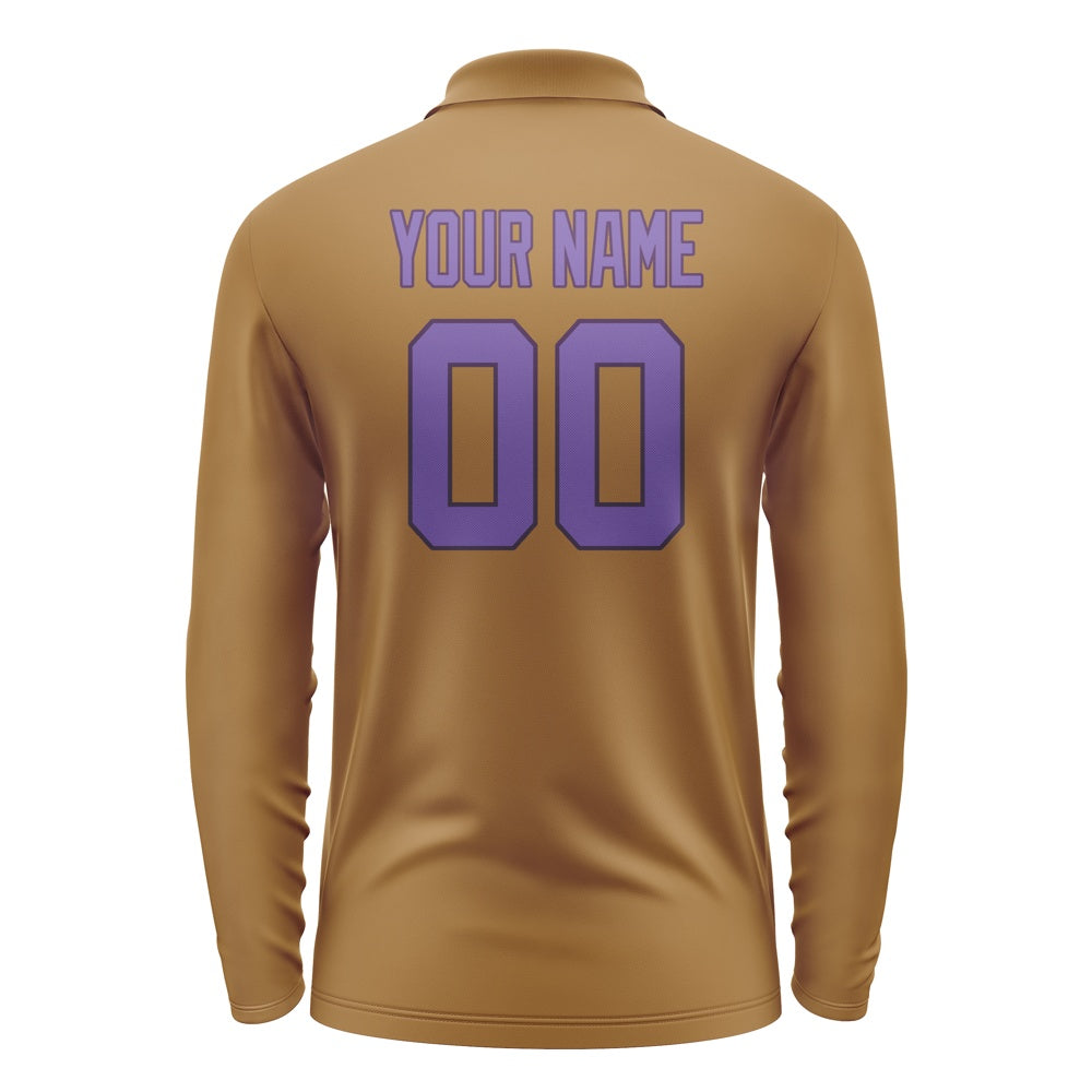 Custom Khaki Light Purple Long Sleeve Polo Shirt