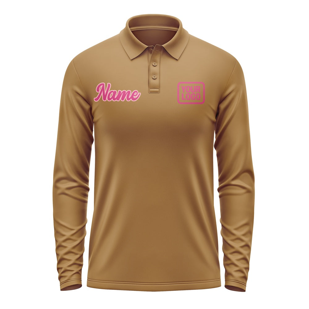 Custom Khaki Pink Long Sleeve Polo Shirt