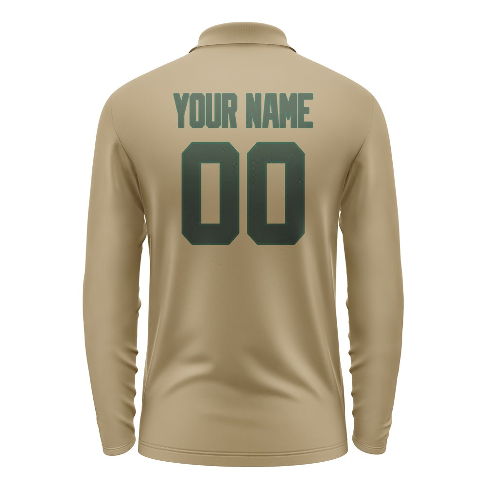 Custom Light Khaki Dark Green Long Sleeve Polo Shirt