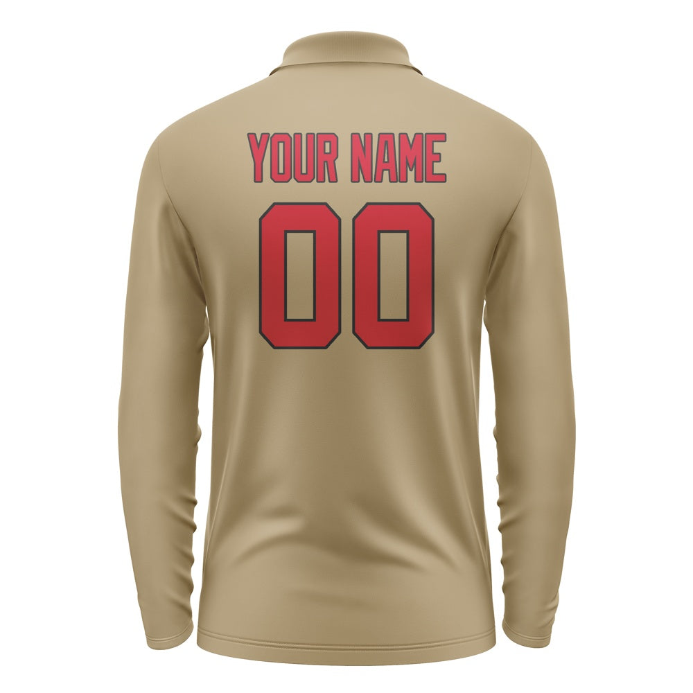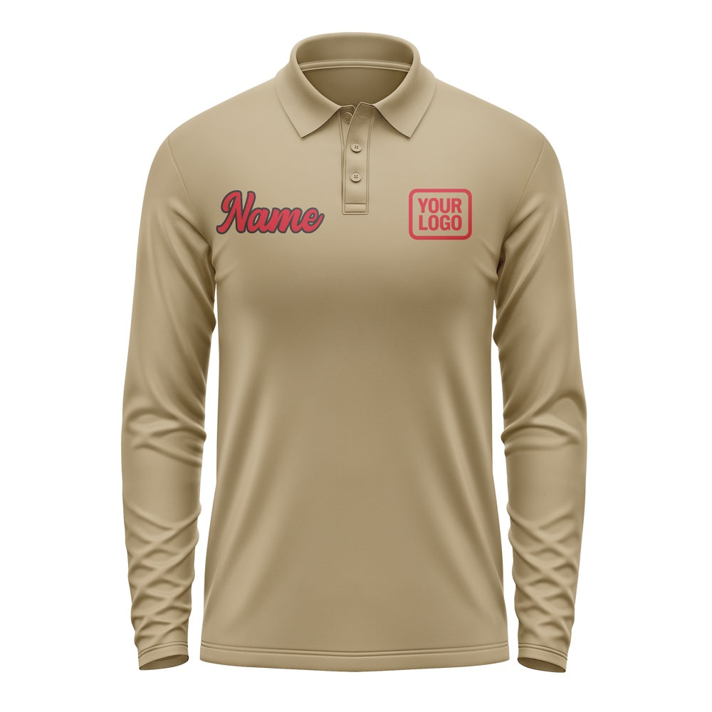 Custom Light Khaki Red Long Sleeve Polo Shirt
