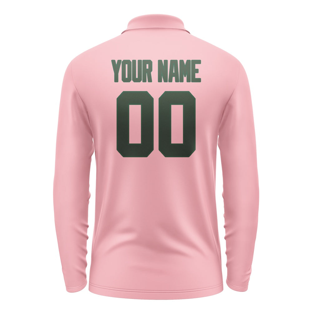 Custom Light Pink Dark Green Long Sleeve Polo Shirt