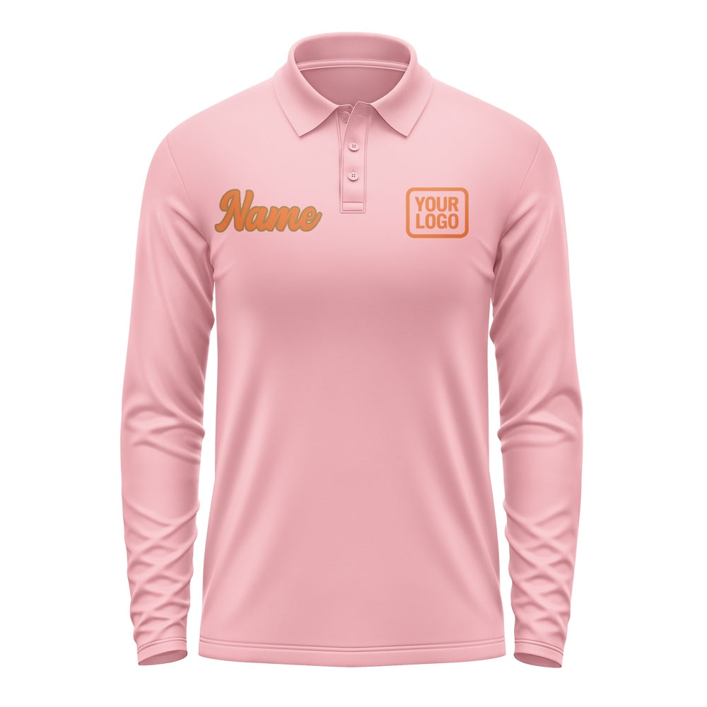 Custom Light Pink Orange Long Sleeve Polo Shirt