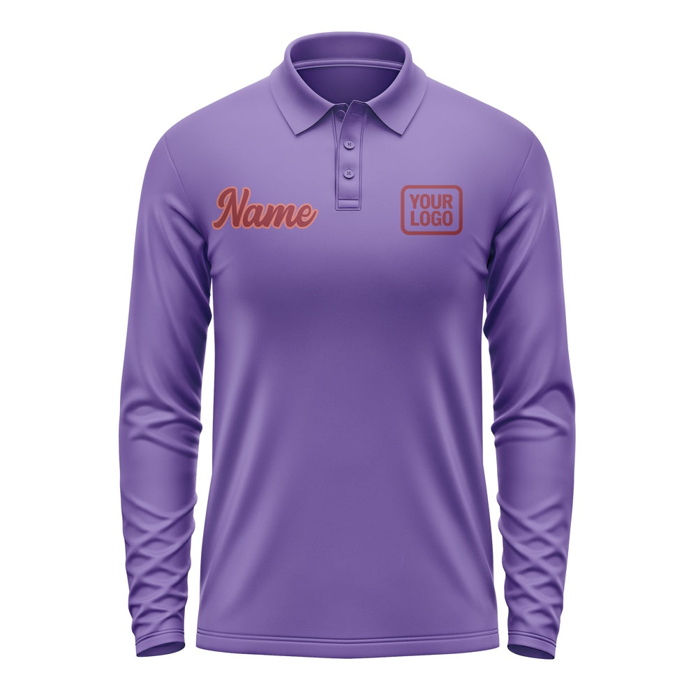 Custom Light Purple Crimson Red Long Sleeve Polo Shirt