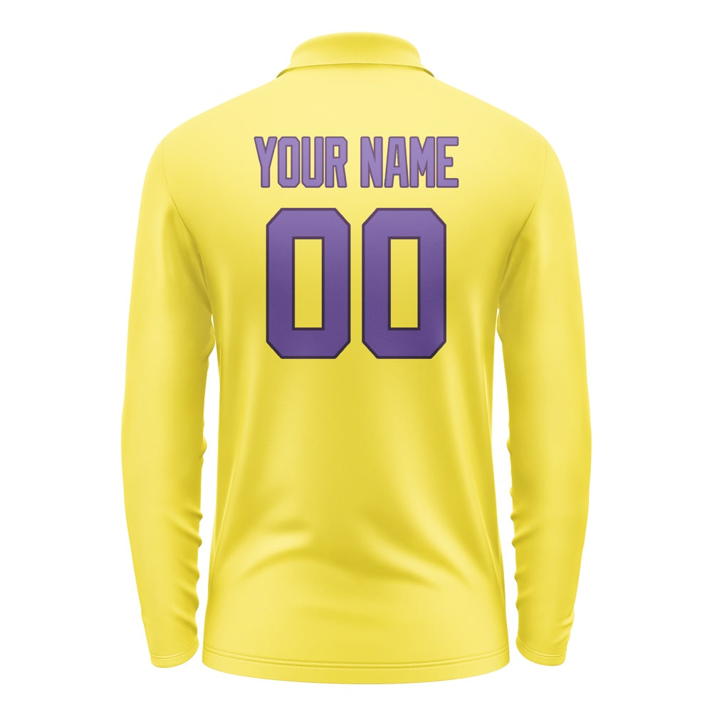 Custom Light Yellow Light Purple Long Sleeve Polo Shirt