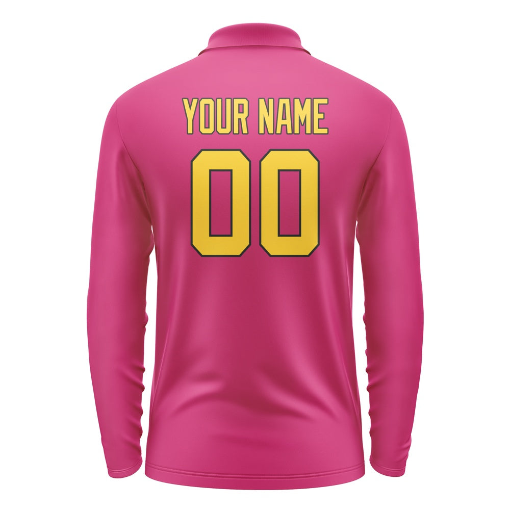 Custom Pink Gold Long Sleeve Polo Shirt